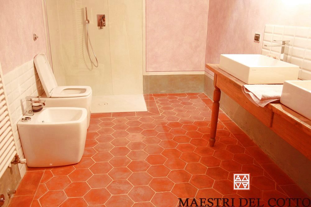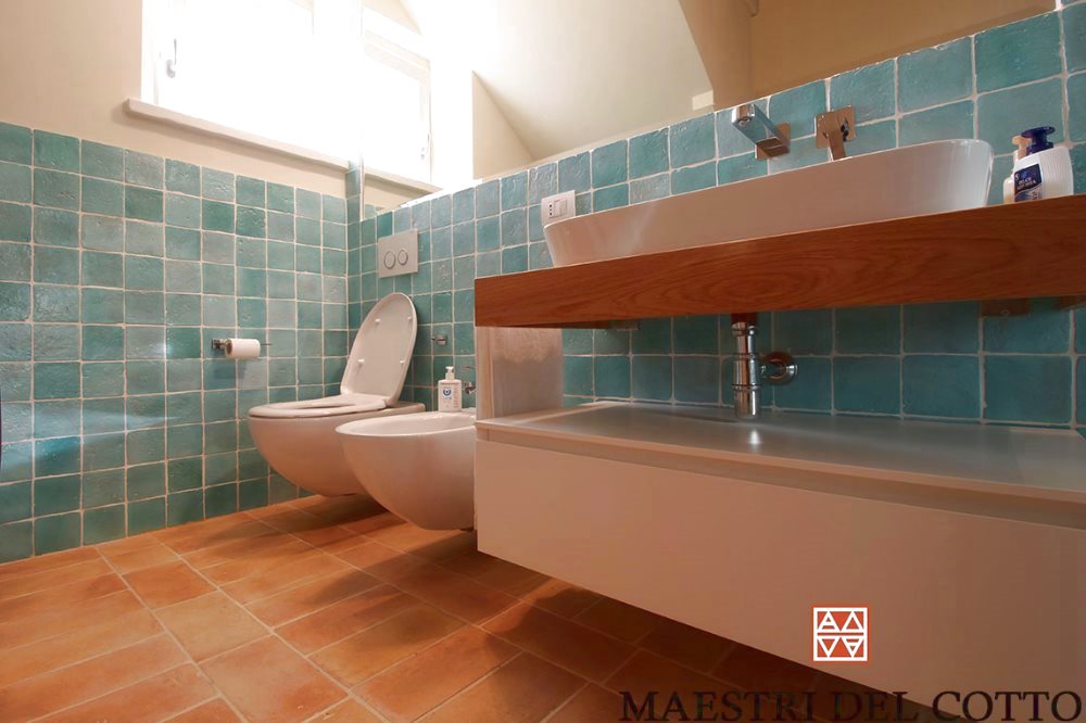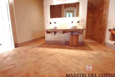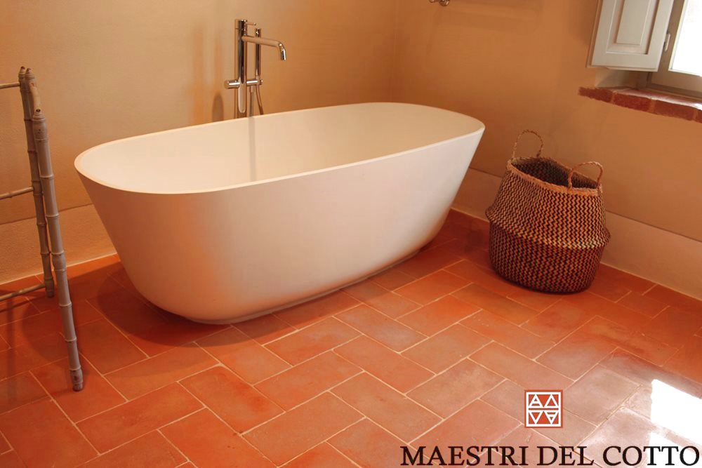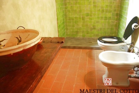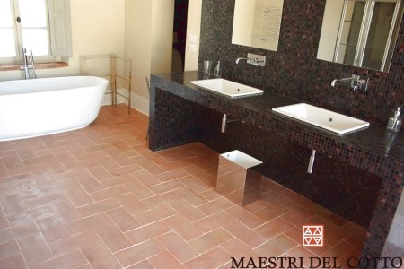 Da oggi, è possibile pavimentare un bagno, in cotto fatto a mano, grazie alla Maestri del Cotto che è l'unica in Italia a proporvi un trattamento anti-macchia garantito.