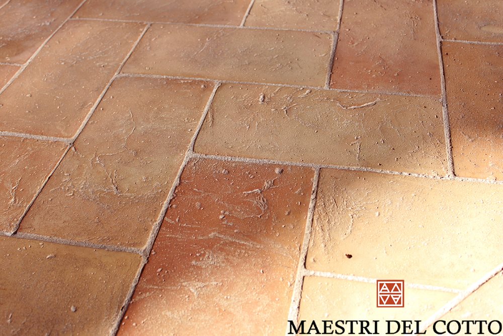 Cotto fatto a mano e cotto a legna secondo le antiche anticato tradizioni etrusche , garantito per esterno . Un pavimento artigianale >>