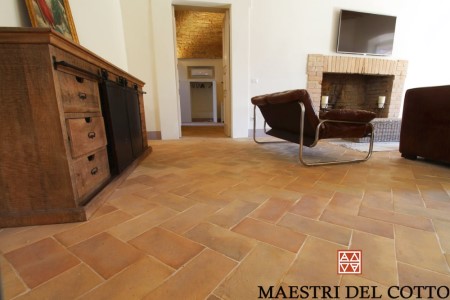 Il cotto giallo fatto a mano e cotto a legna, prodotto dalla fornace Maestri del Cotto, da noi chiamato cotto umbro, ha una colorazione giallo paglierino con sfumature rosa tipiche della cottura a legna.