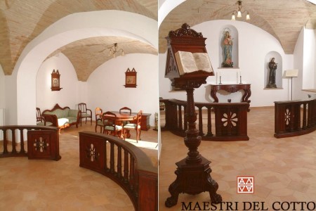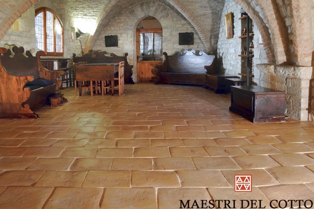 Per la splendida pavimentazione abbiamo fornito un cotto fatto a mano che ricordasse il più possibile il vecchio cotto, per dare agli interni dell'eremo un tocco antico ed elegante.
