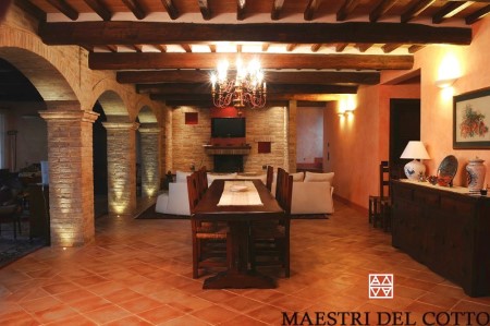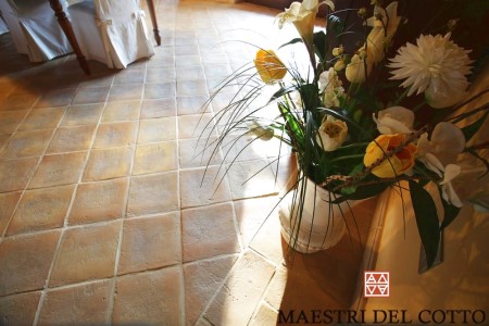 Pavimento in cotto per interni ,prodotto artigianalmente e cotto a legna seguendo fedelmente il metodo etrusco. La bellezza del cotto si unisce alla praticità del Trattamento Garantito Antimacchia fornito insieme alla posa in opera a calce direttamente dall'azienda MAESTRI DEL COTTO s.n.c.Ideale in presenza di pavimento riscaldato specialmente con la posa a calce che elimina l'uso di colla e le relative esalazioni chimiche.Per saperne di più clicca su www.maestridelcotto.it