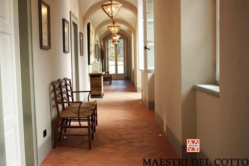 Pavimento in cotto rosato toscano tradizionale per casali e cascine