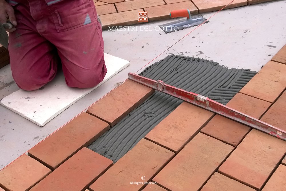 Innanzitutto per procedere ad una corretta posa del tuo pavimento in cotto, assicurati sempre di avere le caratteristiche tecniche idonee. Se si parla di un pavimento esterno, al fine di evitare problemi di ristagno dell’acqua, assicurati sempre di avere una pendenza minima dell’1,5%. In tutti i casi è sempre indispensabile controllare la stagionatura e la resistenza meccanica del massetto, per poi procedere alla ripulitura della superficie per favorire una corretta adesione dei manufatti al supporto.