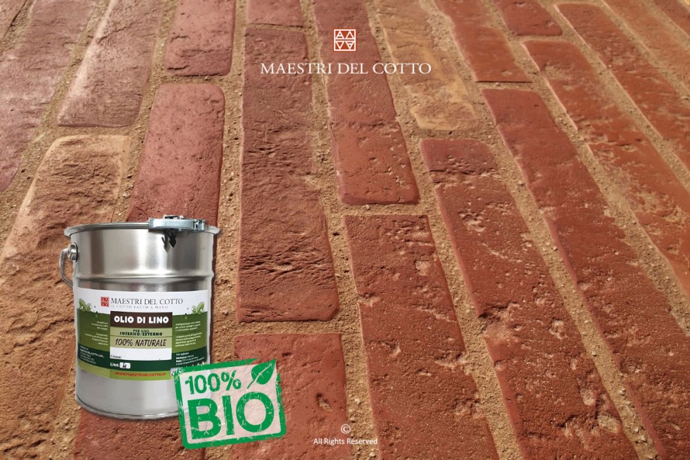 Olio di Lino Bio è un impregnante naturale ad alta penetrazione a base di olio di lino crudo e solventi vegetali. In quanto olio vegetale, va ad agire ed impregnare in profondità, totalizzando naturalmente il cotto e lasciando un effetto opaco. La sua applicazione come singolo prodotto è indicata per il trattamento di pavimenti esterni.