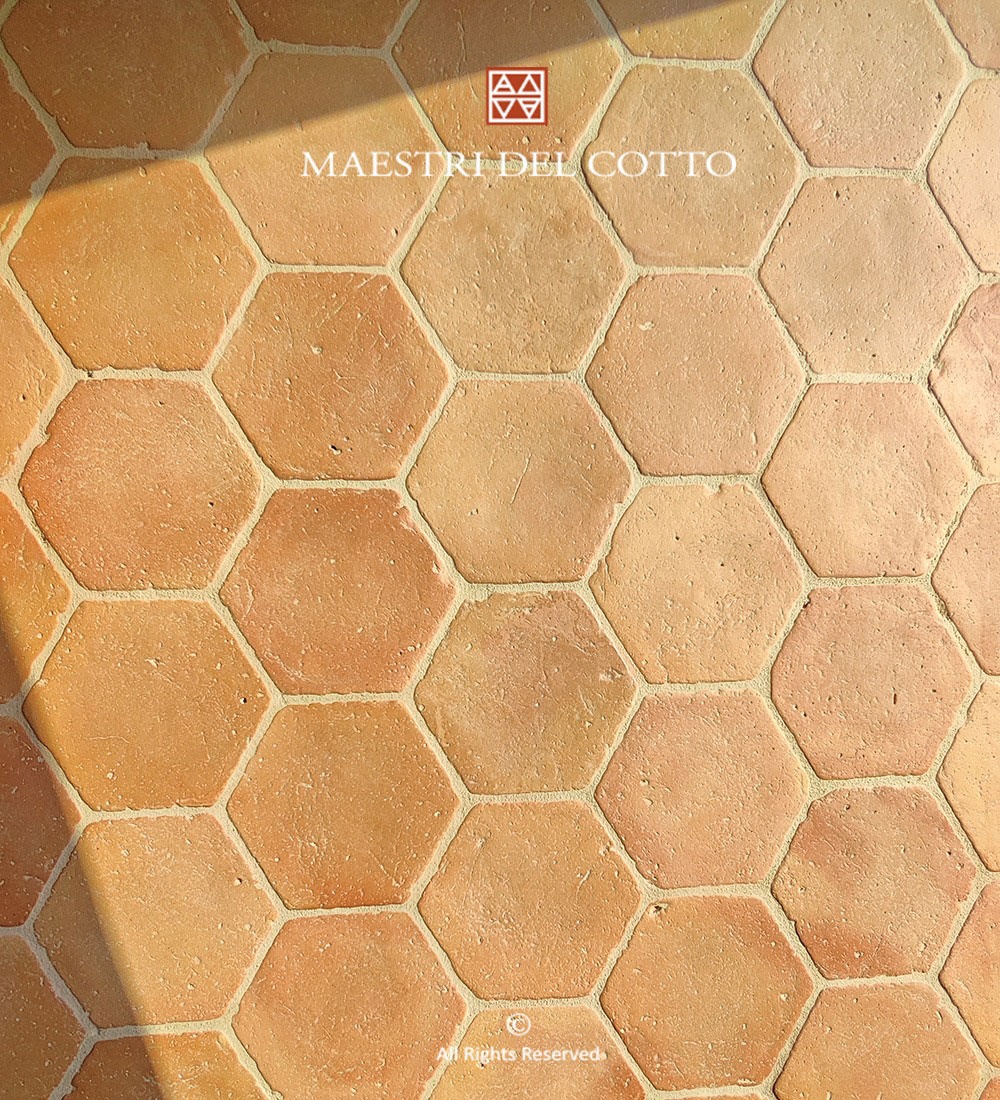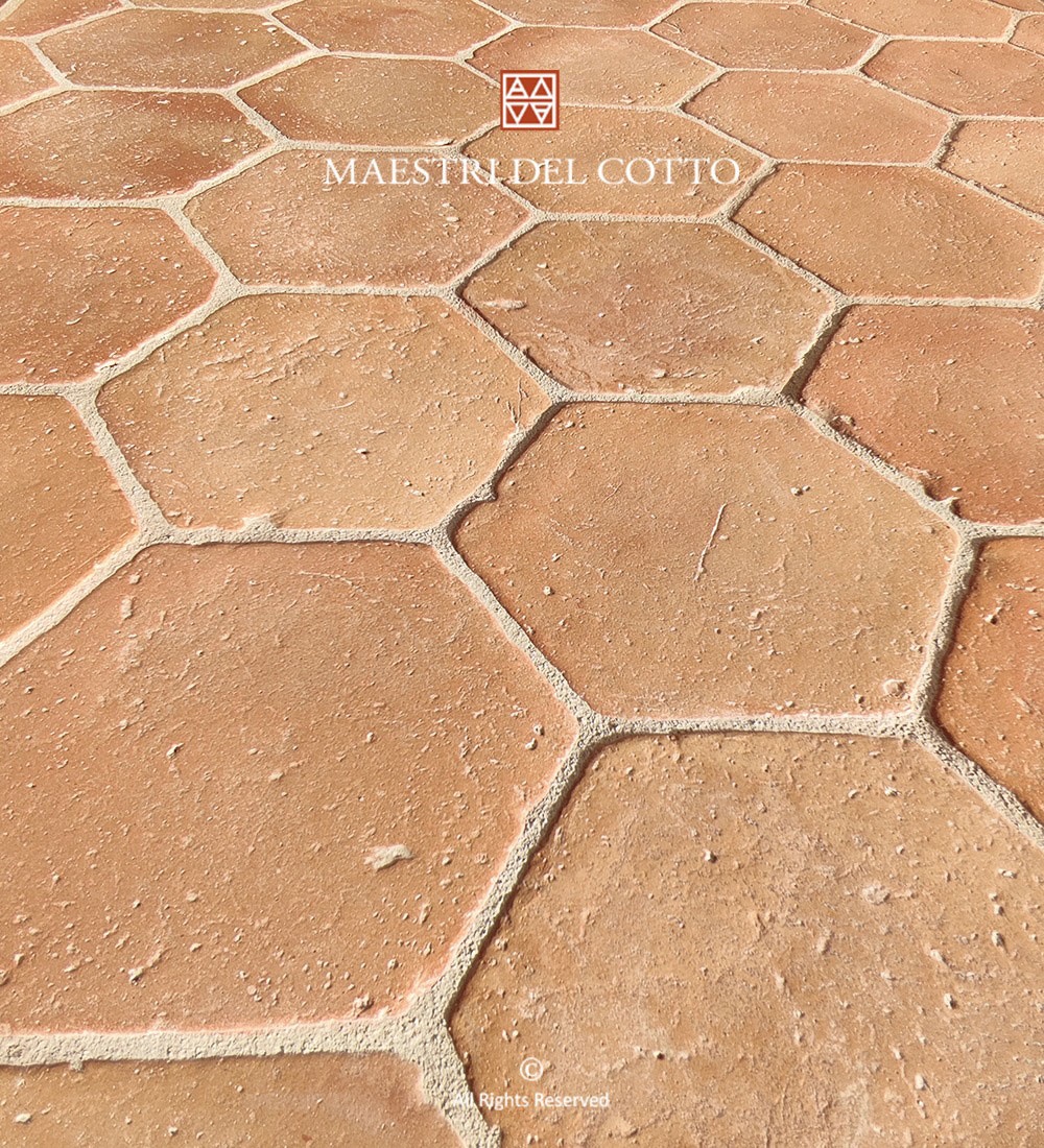 Esagoni in Cotto Storico vengono prodotti antichizzando le migliori partite di cotto fatto a mano e cotto a legna con l'esclusivo