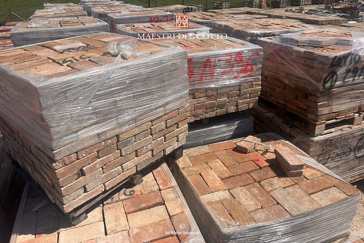 Mattoni antichi di recupero fatti a mano, attentamente selezionati e provenienti da demolizioni storiche italiane, che presentano quindi tutte le caratteristiche di un prodotto unico ed antico, eterogeneo nella forma e nel colore. Trattandosi di materiale di recupero, le misure dei formati sono da considerarsi orientative e potrebbero variare da un manufatto all'altro.