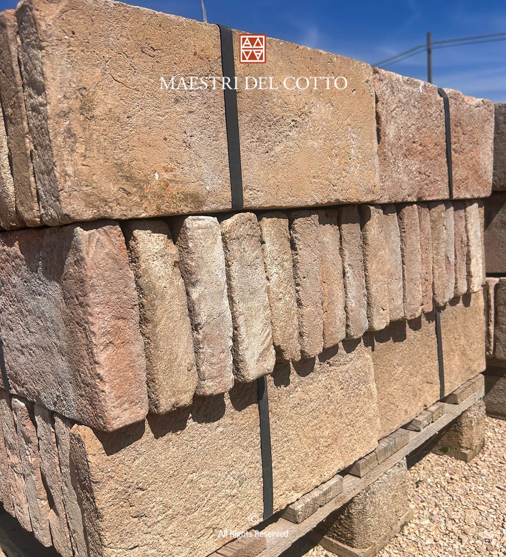 Cotto antico di recupero fatto a mano, attentamente selezionato, proveniente da demolizioni storiche italiane, che presenta quindi tutte le caratteristiche di un prodotto unico ed antico, eterogeneo nella forma e nel colore. Trattandosi di materiale di recupero, le misure dei formati sono da considerarsi orientative e potrebbero variare da un manufatto all'altro.
