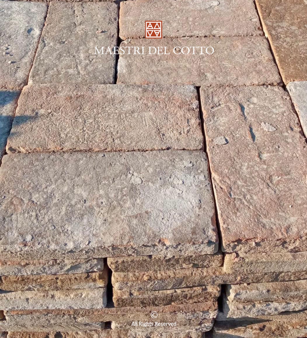 Cotto antico di recupero fatto a mano, attentamente selezionato, proveniente da demolizioni storiche italiane, che presenta quindi tutte le caratteristiche di un prodotto unico ed antico, eterogeneo nella forma e nel colore. Trattandosi di materiale di recupero, le misure dei formati sono da considerarsi orientative e potrebbero variare da un manufatto all'altro.