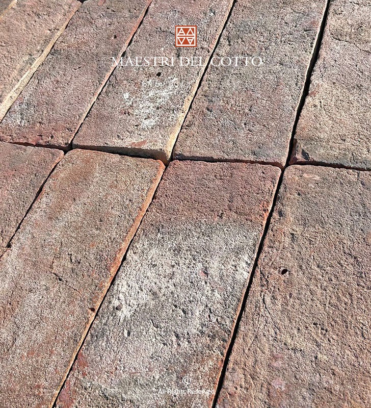 Cotto antico di recupero fatto a mano, attentamente selezionato, proveniente da demolizioni storiche italiane, che presenta quindi tutte le caratteristiche di un prodotto unico ed antico, eterogeneo nella forma e nel colore. Trattandosi di materiale di recupero, le misure dei formati sono da considerarsi orientative e potrebbero variare da un manufatto all'altro.