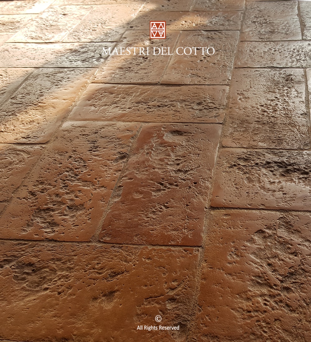 Metodo Flumen. La forza dell'acqua ed il potere usurante delle pietre fanno sì che il nostro Cotto Storico eguagli come aspetto estetico i vecchi pavimenti in cotto antico con in più la forza e la compattezza di un cotto nuovo.