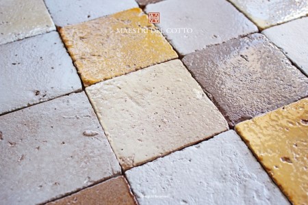 Maestri del Cotto realizza Piastrelle in Cotto Smaltato in diverse finiture di superficie, al fine di esaltare al meglio la tridimensionalità della superficie e del colore stesso.