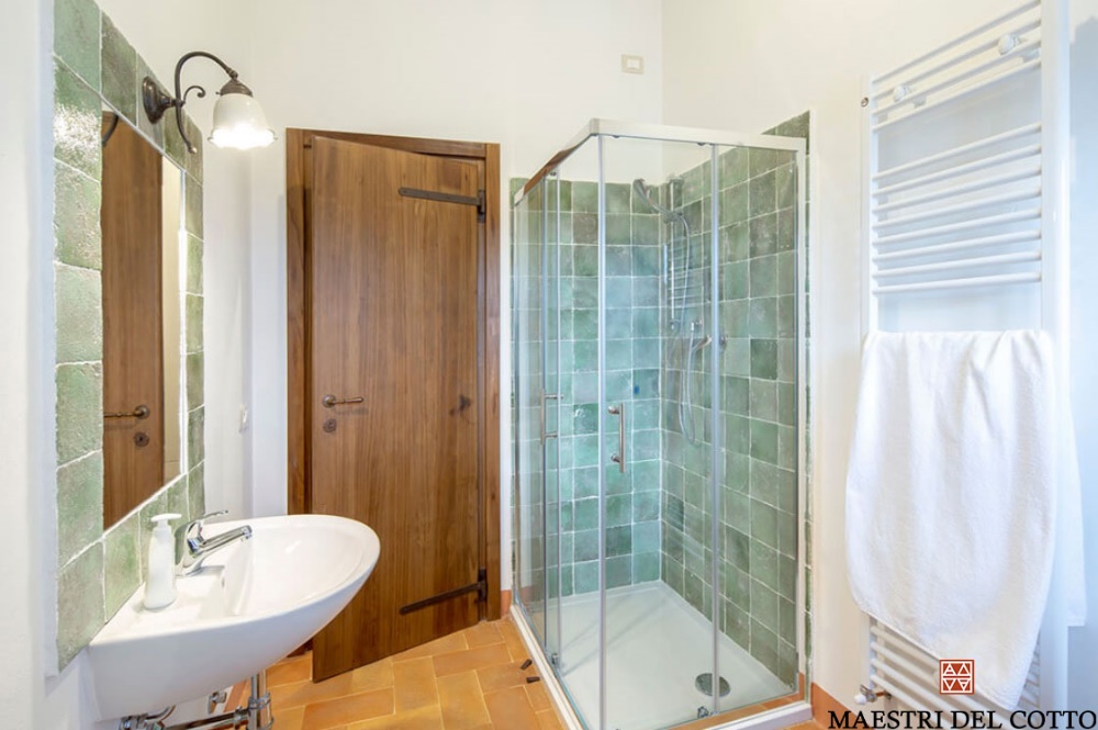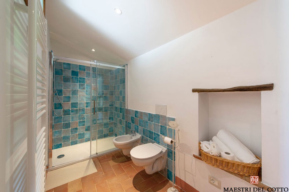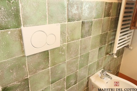 Per i bagni, abbiamo realizzato i rivestimenti in Cotto Smaltato Unici ed Originali!