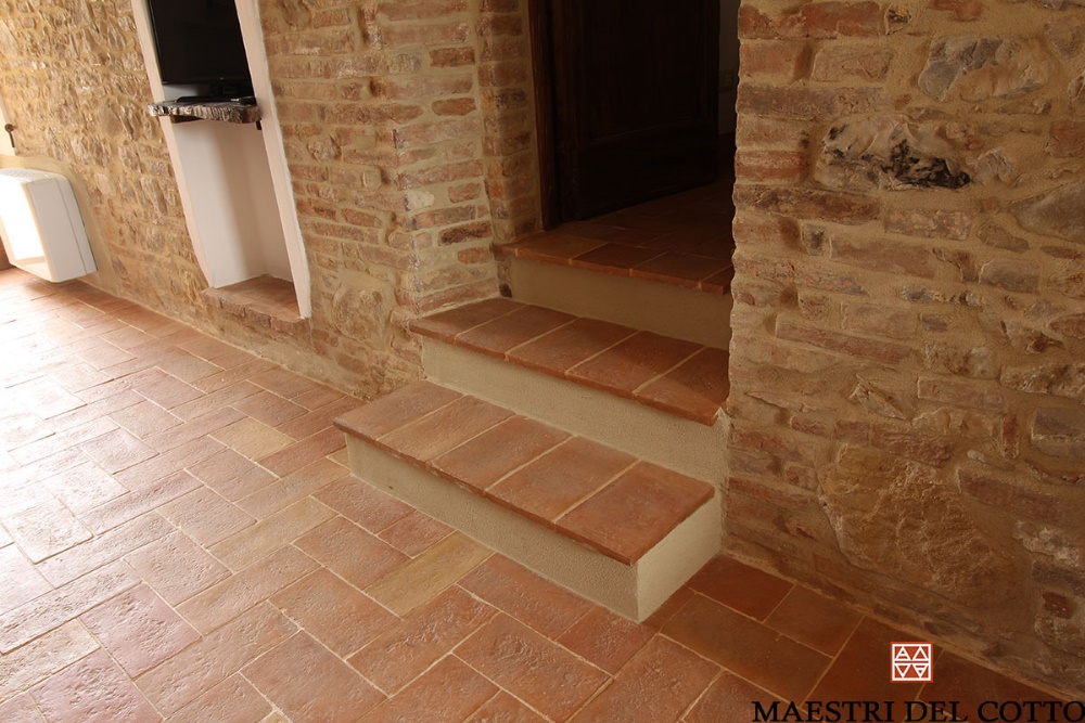 La scelta del materiale è ricaduta sul nostro Cotto Rosato Toscano, prodotto con argille senesi di profondità, tipiche del luogo.