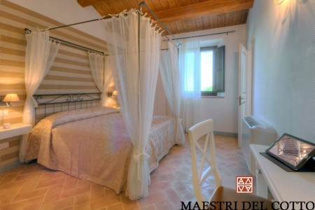 Per la reception, a sala pranzo e le camere abbiamo rivestito i pavimenti con il nostro Cotto Chiaro Umbro Vissuto, nel Formato 15-30-2,5 cm.