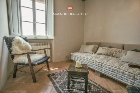 All’interno dell’albergo, si nota subito la scelta raffinata dei materiali: fra questi, spicca il pavimento in Cotto Storico “Terre Umbre Vissuto” una pavimentazione artigianale che conferisce agli ambienti un’eleganza senza tempo. Questo cotto ha un colore prevalentemente rosa-cipria con delicate sfumature gialle e rosse, evocando le argille senesi e umbre e la cottura a legna, finitura “Vissuto” che simula il calpestio morbido e vissuto dei pavimenti storici.