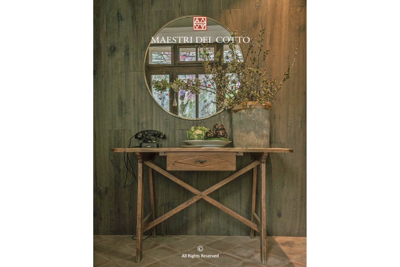 Nelle aree comuni e nelle camere l’effetto è quello di un sottofondo silenzioso, elegante e rasserenante: il cotto dona calore al tatto, apporta un naturale senso di continuità fra gli spazi e fa subito sentire a casa. La finitura “Vissuto” rende la superficie liscia ma con quel leggero segno del tempo passato, che aggiunge carattere senza essere rustica in modo eccessivo.