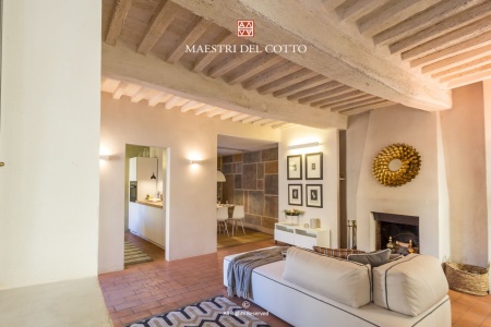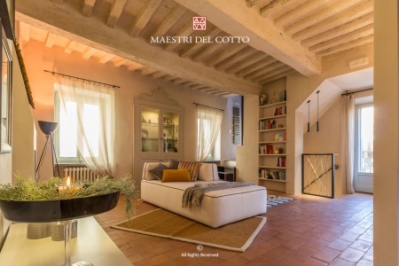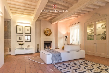 Dati i toni molto delicati della struttura, per le finiture, si è scelto, il Cotto Terre Umbre Vissuto, nello storico ed autentico formato Pianella 15-30 cm.