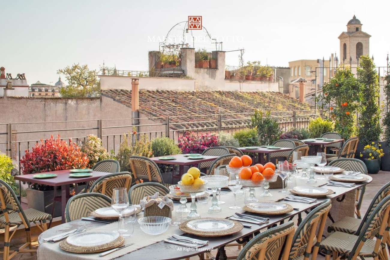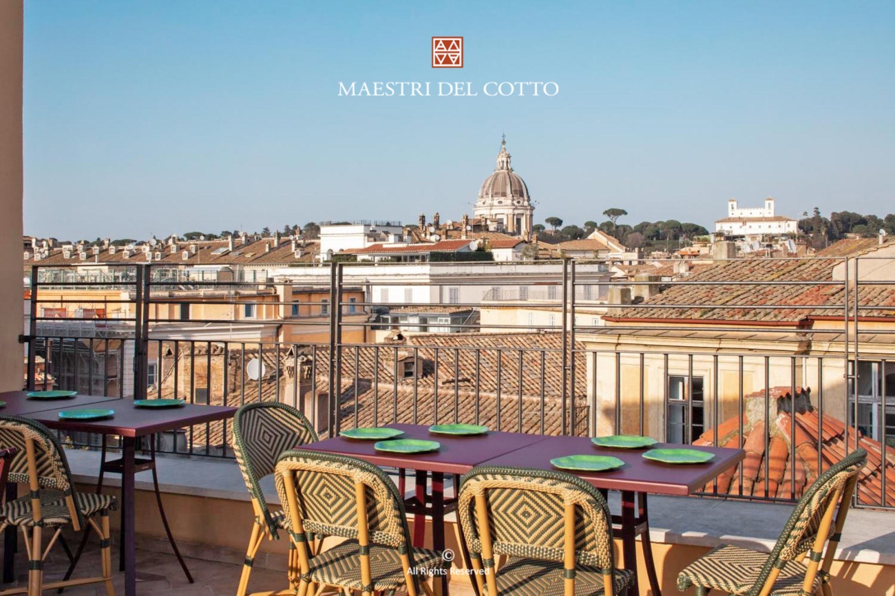 Queste superfici in cotto, fatte con materiali della tradizione artigianale umbra, portano con sé la calda patina del tempo e una matericità che nutre lo sguardo e il passo. Il cotto naturale, con le sue sfumature terrose che variano dal color mattone antico al più profondo rossiccio, fino a leggere venature cariche di polvere d’argilla, dialoga con la luce romana in modo poeticamente mutevole: al mattino diffonde toni dorati, nel pomeriggio accoglie ombre allungate, alla sera si fa scenario ideale per luci soffuse e atmosfera intima. Questi pavimenti valorizzano ogni singolo spazio esterno dell’hotel, dalla terrazza dove si gusta la colazione fino agli angoli comuni dove ci si può fermare a bere un drink o semplicemente osservare la città sotto i propri piedi.