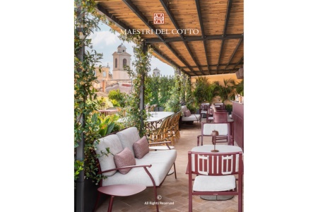 Il fascino dell’Hotel Adriano non sta solo nella sua posizione privilegiata, né nella cura con cui sono state restaurate le facciate dell’edificio, bensì nell’armonia che lega vecchio e nuovo. Gli arredi, le finiture, il design moderno che convive con elementi classici: tutto contribuisce a creare un’atmosfera che non è né completamente retrò né puramente contemporanea, ma una fusione elegante che esalta ciò che è già presente. E tra questi dettagli, un elemento che spesso passa inosservato ma che qui diventa protagonista nei momenti all’aperto: i pavimenti da esterno in cotto Terre Umbre naturale.