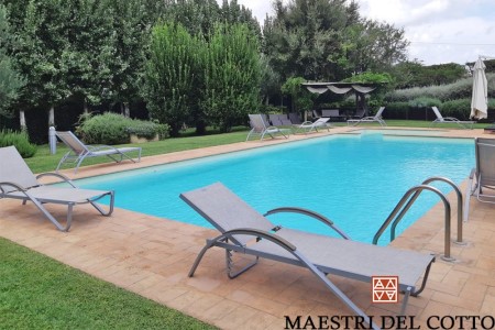 La Maestri del Cotto ha fornito cotto fatto a mano e cotto a legna all'incantevole Podere dell'Arco. Country charme offre un soggiorno di massimo relax a contatto con la natura per assaporare i profumi della campagna viterbese,per rifugiarsi in un delizioso nido d'amore o semplicemente per godersi un meritato relax a bordo piscina.