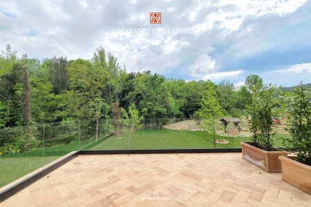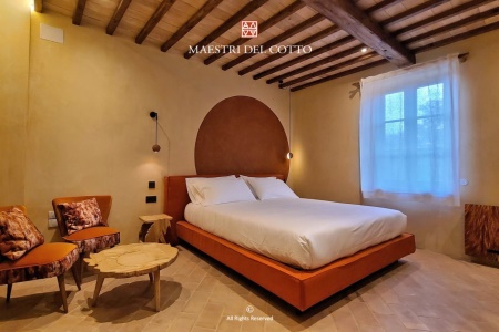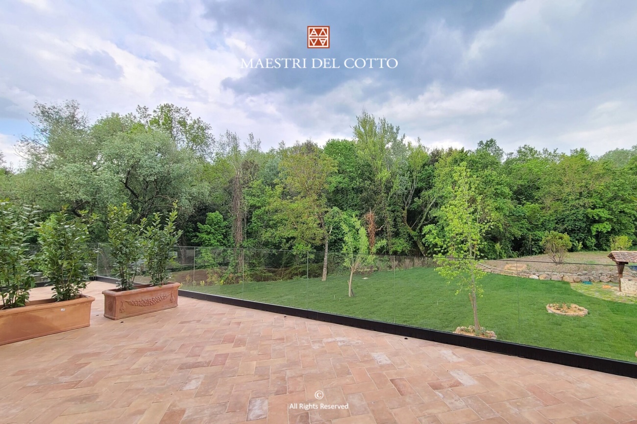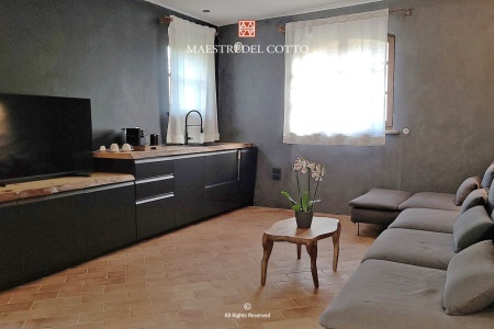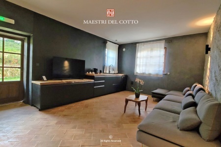 Nel progetto di restauro, la scelta dei materiali non è mai stata casuale, ma radicata nelle tradizioni artigiane della Toscana. I pavimenti interni in cotto Terre Umbre in formato Pianella si adattano perfettamente a questi ambienti. Il formulato delle Terre Umbre, nato dall’unione di argille rosate toscane e argille chiare umbre, cotto a legna, è vivo nel colore, varia per sfumature; la Pianella, rettangolare, classico formato rustico, regala una calda matericità sotto i piedi.
