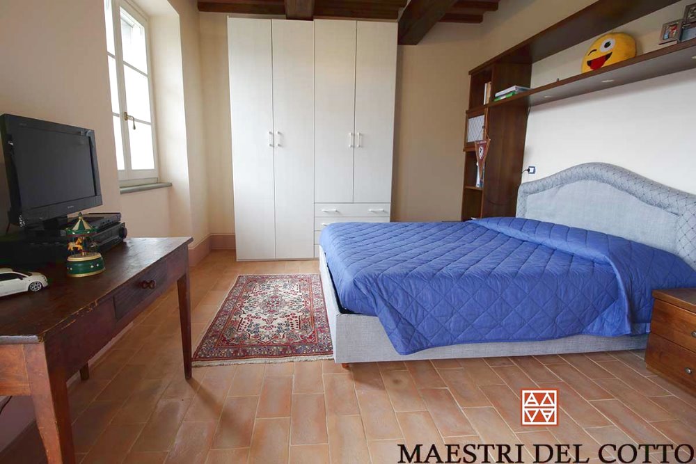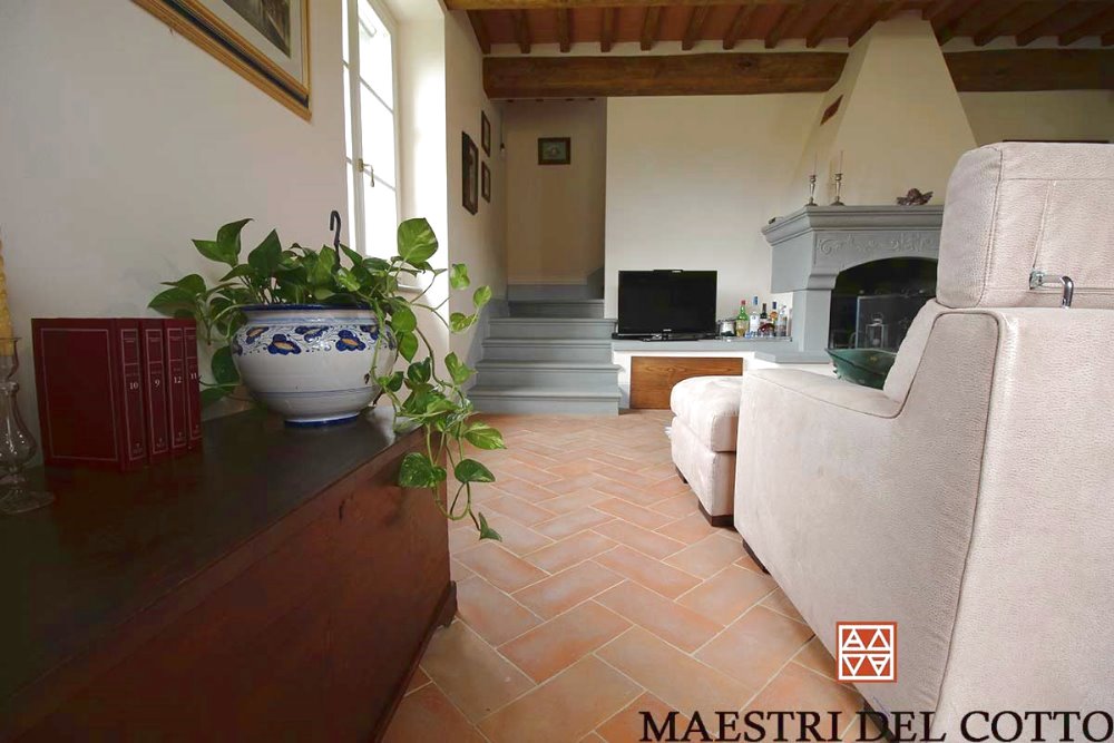 Per questa graziosa villa, i proprietari hanno scelto il nostro Cotto Rosato Toscano Vissuto, eseguito esclusivamente con argille di profondità senesi,nel formato 15-30-2,5 cm.