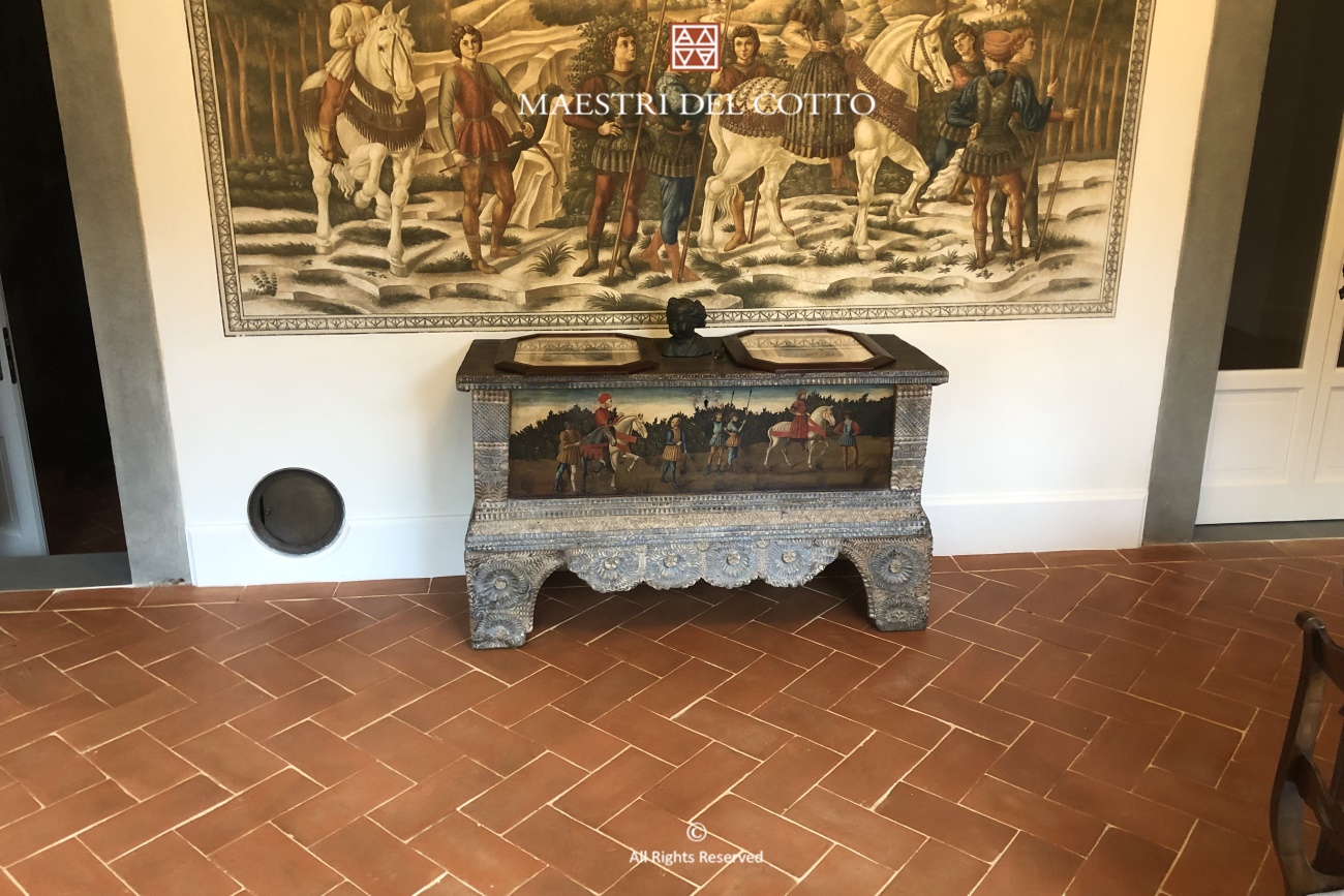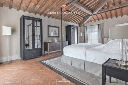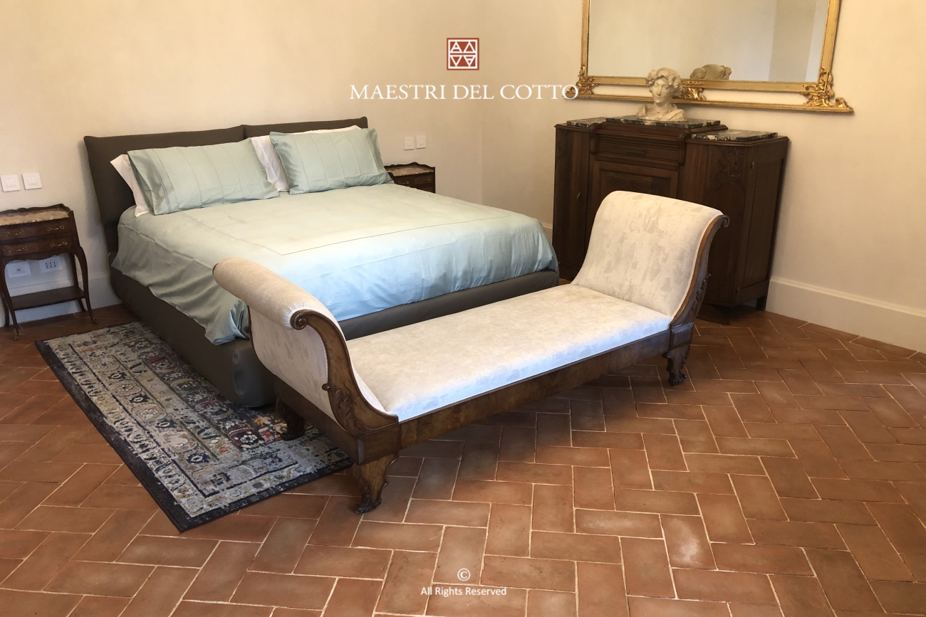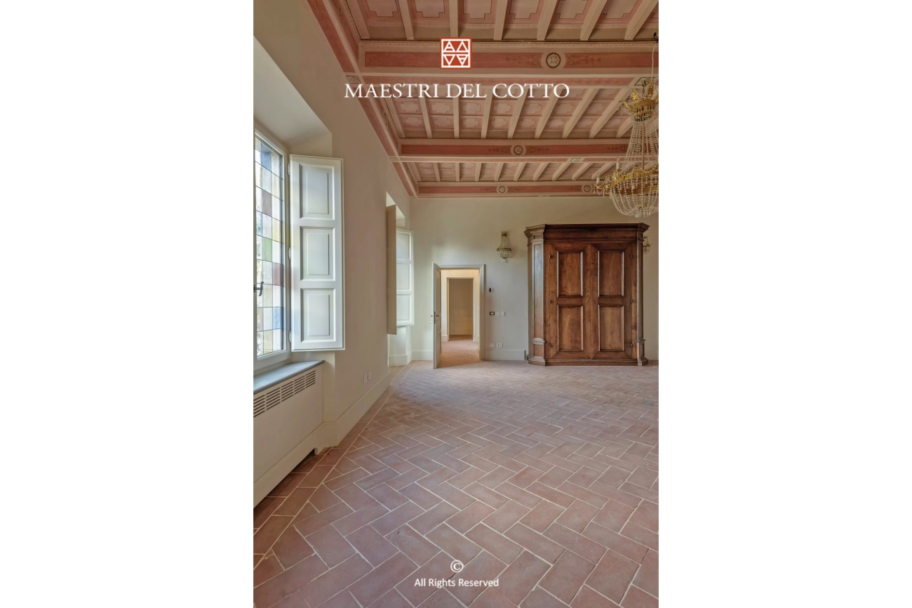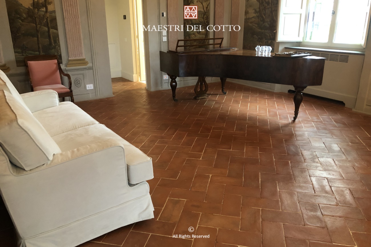 La Villa risale al XVI Secolo e la sua anima rinascimentale traspare in tutte le sue ampie sale e nel ricco arredamento. Ecco che la scelta di installare un Cotto artigianale, dall’anima storica tanto quanto il metodo con cui viene realizzato, è stata vincente.